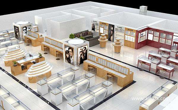 在眼镜店的装饰中,必须严格控制商店中的通道尺寸和柜台的尺寸。一方面,便于管理和管理,另一方面,方便客人四处走动。